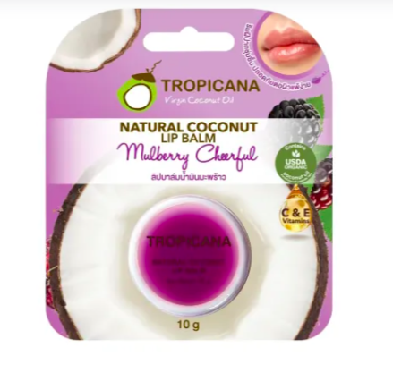 Натуральный бальзам для губ Веселая Шелковица от тайского бренда Tropicana (Тропикана) — нежный уход для губ на основе натуральных масел и восков. Бальзам эффективно питает, смягчает и защищает губы, даря лёгкий фруктовый аромат шелковицы.