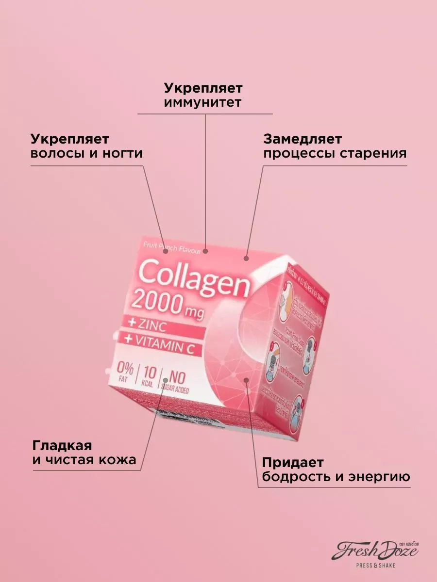 Коллаген с витаминами A, C и E 2000 mg — биологически активная добавка, которая помогает поддержать красоту и здоровье изнутри. С возрастом выработка собственного коллагена уменьшается, что проявляется в потере упругости кожи, ломкости волос и ухудшении гибкости суставов. Эта формула восполняет дефицит, помогая: