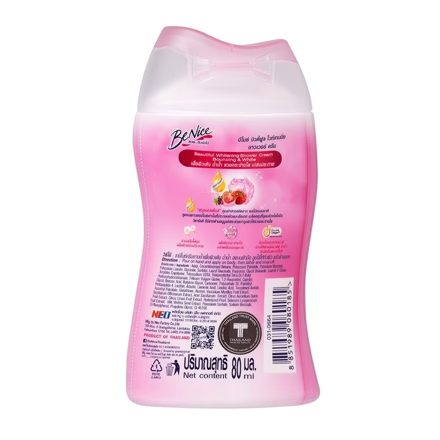 Benice Shower Cream Beautiful Whitening 80 мл — это роскошный парфюмированный душ-крем, созданный для деликатного ухода и выравнивания тона кожи. Обогащён витаминными концентратами и натуральными экстрактами, он мягко очищает кожу, придаёт ей сияние и обеспечивает ощущение свежести.