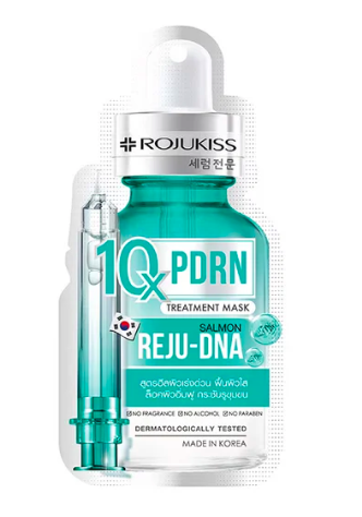 Маска для лица с 10-кратной интенсивной сывороткой для быстрого омоложения кожи изготовлена с использованием ДНК лосося, которая очень напоминает ДНК человека. В сочетании с коллагеном, гиалуроновой кислотой и ниацинамидом маска придает коже сияние и увлажнение, удерживает влагу, укрепляет и подтягивает кожу, а также уменьшает видимость пор.